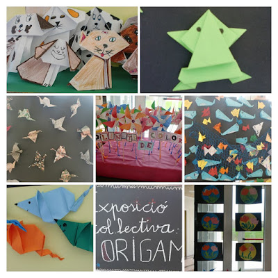 El Departament d' Artística va proposar treballar l'origami, paper doblegat, des dels més petits fins a 6è, aquest segon trimestre. Hem fet coses molt variades des de flors, peixos, ocells, vaixells, gats i gossos, granotes, balenes, papallones i ratolins, de tot i molt divertit.